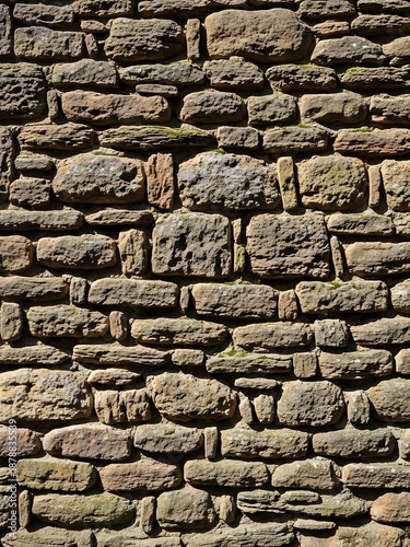 © Sododroke, Obraz premium Aged stone wall background with irregular pattern under natural light