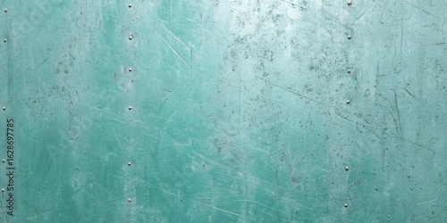 Fototapeta premium Aged turquoise painted metal surface with scratches and grunge texture creates a vintage and industrial background for various design projects
