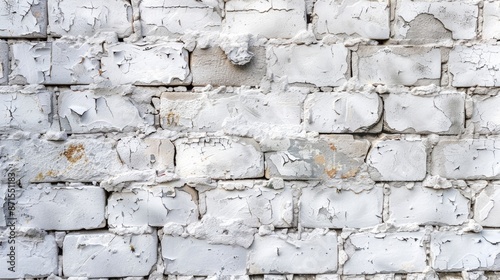 Fototapeta premium Aged white brick wall with imperfections Close up view for banners with empty area