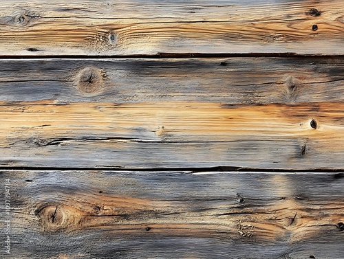 Naklejka premium Aged wood texture with a rough surface and deep grain lines in various shades...