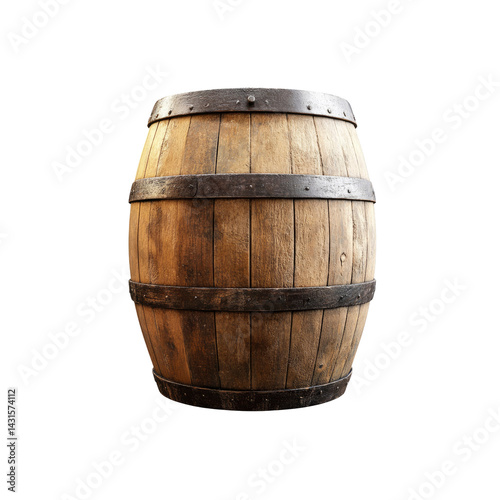© HKTArt4U, Obraz premium Aged Wooden Barrel with Metal Bands - Isolated on Black