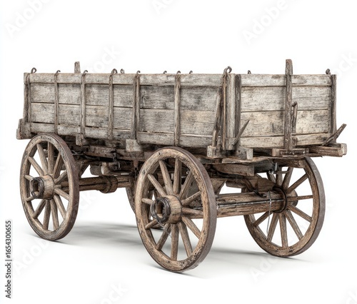 © Aan, Fototapeta premium Aged wooden farm wagon, rear view