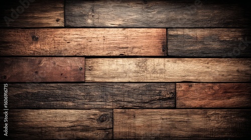 © Sahal, Fototapeta premium Aged Wooden Planks Texture Background