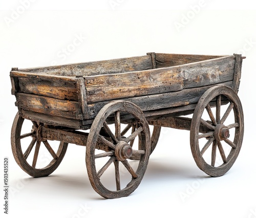© Fajry, Fototapeta premium Aged wooden wagon, isolated white