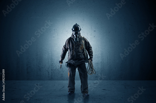 © ra2 studio, Fototapeta premium Agent in a dark space with arms