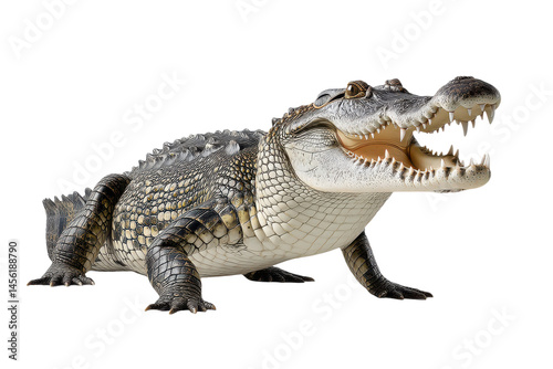 Obraz premium Aggressive crocodile with open mouth showing teeth, isolated on transparent...