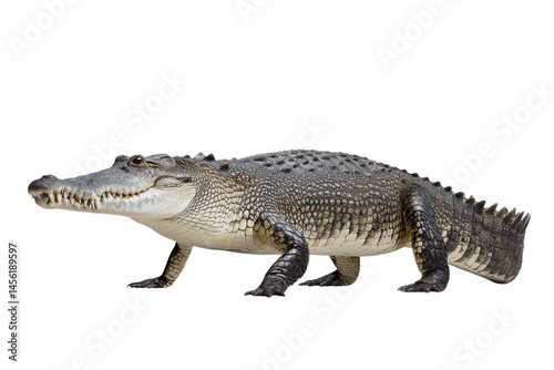 © Yhs City, Naklejka premium Aggressive crocodile with open mouth showing teeth, isolated on transparent background