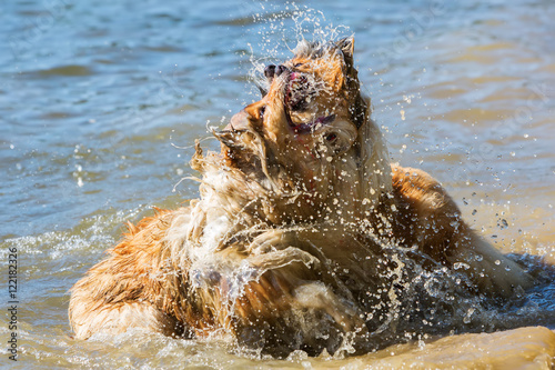 © Christian Müller, Obraz premium aggressive dogs fighting in the water