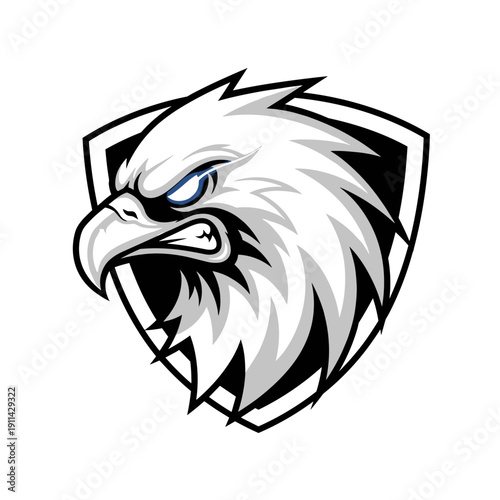 Obraz premium Aggressive eagle head mascot logo inside a shield graphic design