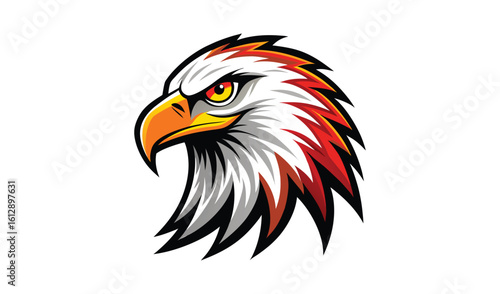 Fototapeta premium Aggressive eagle head mascot with fierce expression and red and white feathers