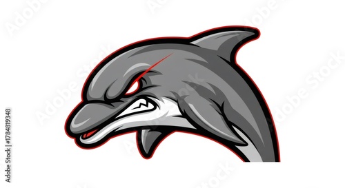 © Minh, Obraz premium Aggressive Gray Dolphin with Red Outlines Isolated on White Background Contains Watermark