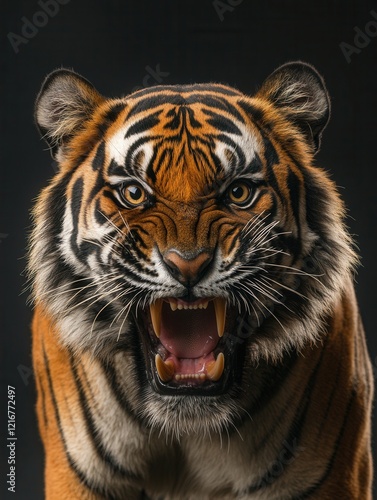 © Tetiana, Fototapeta premium Aggressive growling tiger with open jaws