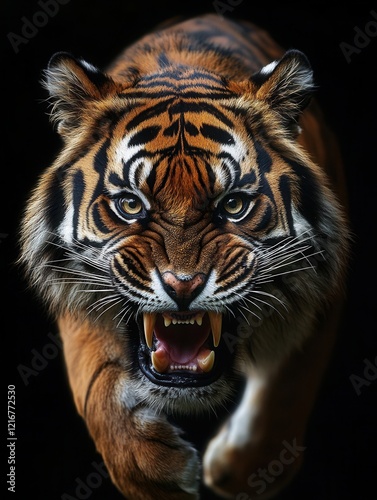 © Tetiana, Fototapeta premium Aggressive growling tiger with open jaws