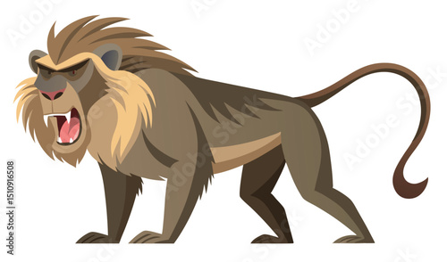 © Rafijur , Fototapeta premium Aggressive hamadryas baboon illustration