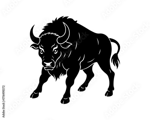© Rasel, Fototapeta premium aggressive, Jumping, Angry, American, Bison Silhouette Vector Logo