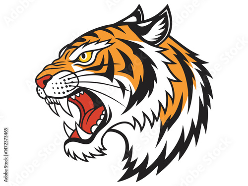 Fototapeta premium "Aggressive Roaring Tiger Head Vector Illustration for Logo or Mascot Design"