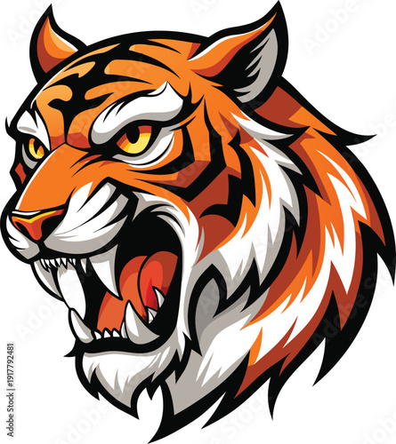 © Istiak, Fototapeta premium Aggressive roaring tiger mascot logo vector illustration flat design