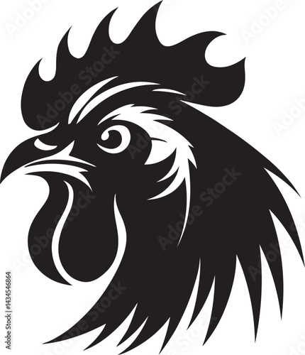 © GraphiXpert, Fototapeta premium Aggressive rooster vector head silhouette