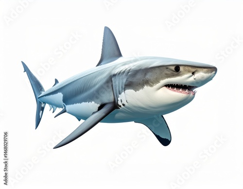 © Studio-M, Fototapeta premium Aggressive shark over white background