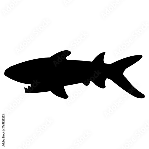 © Michael, Obraz premium Aggressive Shark Silhouette Icon, Black Marine Animal Predator Vector Graphic for Ocean Danger