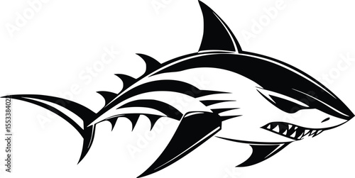 Fototapeta premium Aggressive Shark Tribal Tattoo Design, Vector Illustration, Dark Mood