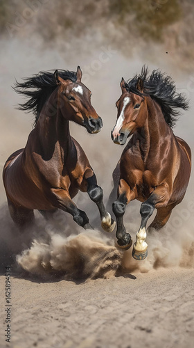 © Laiba, Obraz premium Aggressive stallion fight kicking up clouds of desert dust 32k, full ultra hd, high resolution