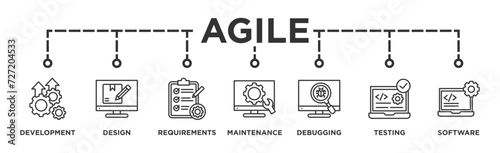 © Good Wife, Fototapeta premium Agile banner web icon vector illustration concept with icon of development, design, requirements, maintenance, debugging, testing and software