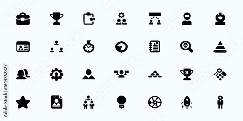 © GenzTech, Naklejka premium Agile & Scrum Workflow Line Art Vector Icons — Sprint Planning, Task Management, Development Cycle, Team Collaboration, and Software Project Symbols