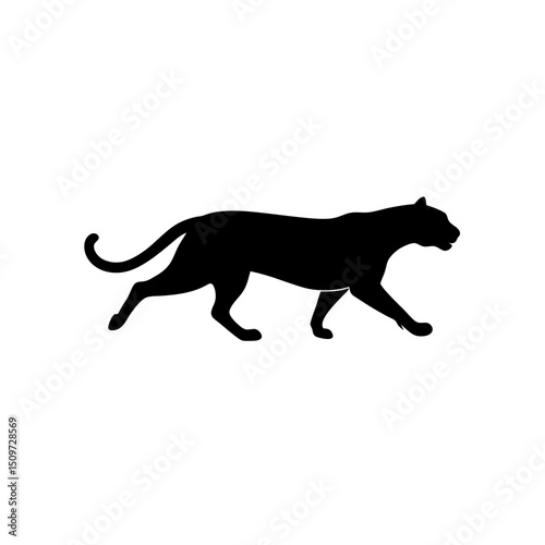 © Sorodini, Fototapeta premium Agile Side View of a Leopard Running Black Silhouette Vector Clip Art Illustration