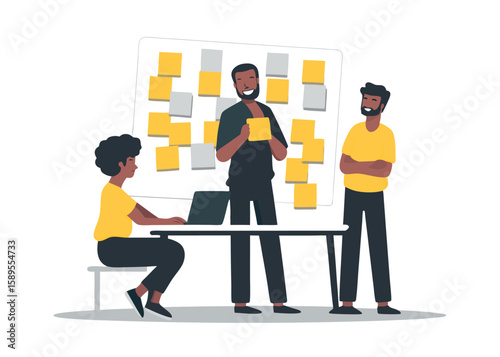 Fototapeta premium Agile Teamwork Illustration Collaboration Brainstorming and Project Planning Meeting with Yellow Stickies for Business