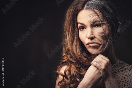 © Nejron Photo, Obraz premium Aging and skin care concept. Half old half young woman.