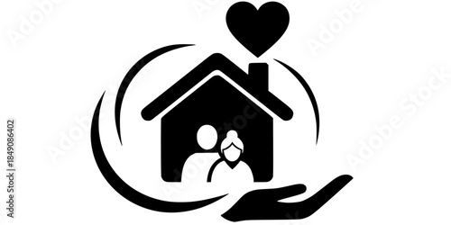 Obraz premium Aging in Place Home Care Heart House Icon Silhouette