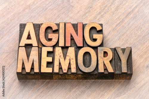 © MarekPhotoDesign.com, Fototapeta premium aging memory word abstract in wood type