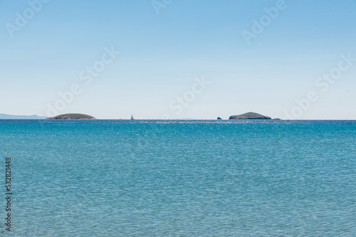 © Stamatios, Fototapeta premium Agios Petros beach in Andros on a beautiful summer day, Cyclades, Greece