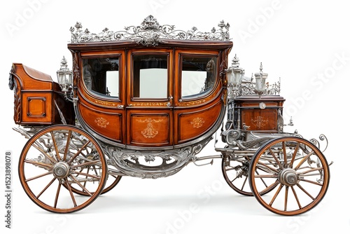 © ckybe, Fototapeta premium Agleaming vintage carriage with polished wood and intricate metalwork.