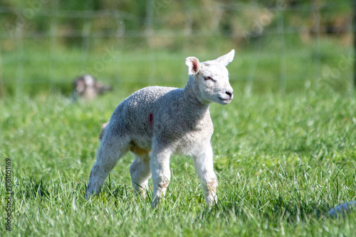 Obraz premium Agneau mignon en pâture, un matin de printemps