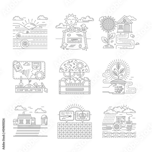 Fototapeta premium Agricultural farm icons set flat line style