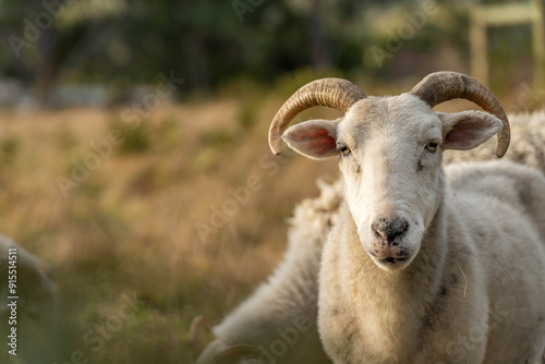 © William, Fototapeta premium Agricultural farm practicing regenerative farmer, with sheep grazing in field practicing rotational grazing storing carbon in the soil through fungi by carbon sequestration