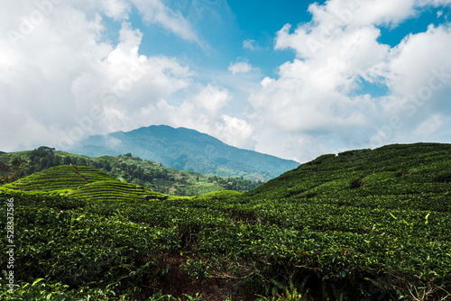 Fototapeta premium Agricultural field landscape with mountain