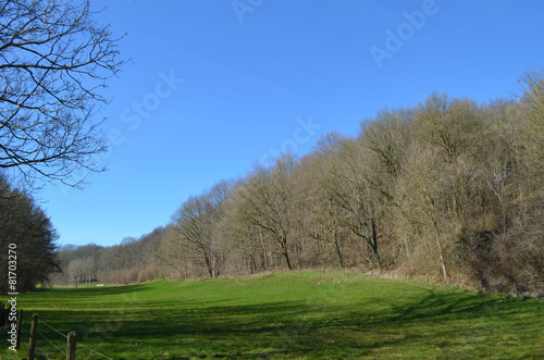Fototapeta premium Agricultural field lined by forests in Huldenberg
