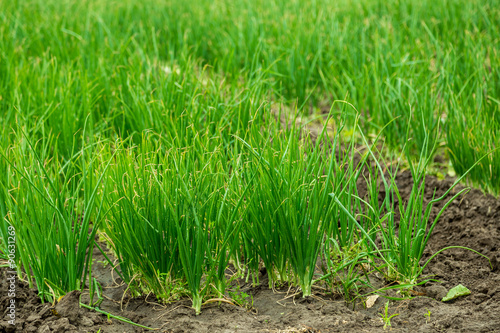 Fototapeta premium Agricultural field with onion