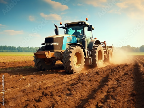 Fototapeta premium Agricultural industry tractors machinery tools plow large areas soil preparation and reducing labor costs.A