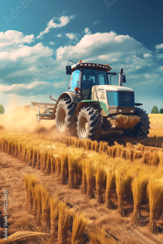 © Felix, Naklejka premium agricultural machinery in the field tractor Generative AI