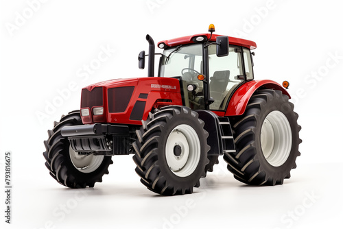 © My Beautiful Picture, Obraz premium Agricultural red tractor on white background. Topics related to agriculture. Topics related to the agricultural world. Image for graphic designer. Agricultural job offer. Organic farming.