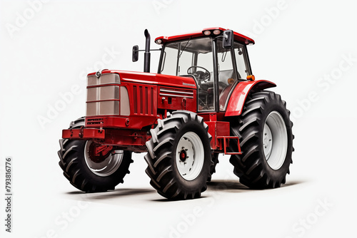 © My Beautiful Picture, Obraz premium Agricultural red tractor on white background. Topics related to agriculture. Topics related to the agricultural world. Image for graphic designer. Agricultural job offer. Organic farming.