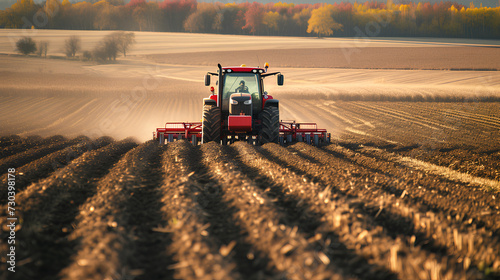 © Moon Project, Fototapeta premium Agricultural worker with a tractor in the field.