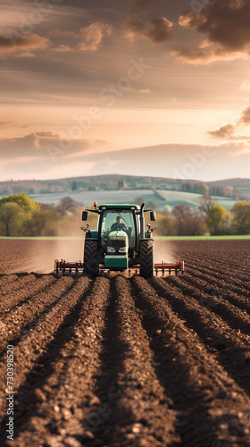 © Moon Project, Fototapeta premium Agricultural worker with a tractor in the field.