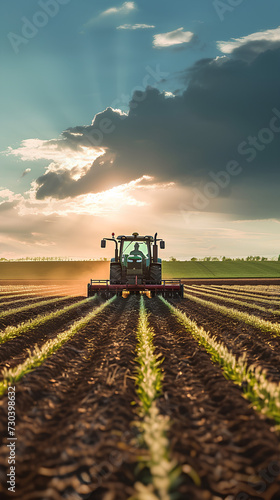 © Moon Project, Fototapeta premium Agricultural worker with a tractor in the field.