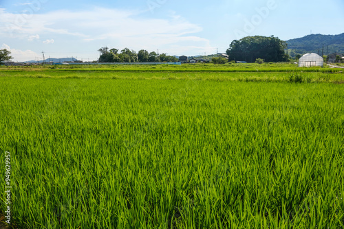 © NOS, Fototapeta premium Agriculture green rice field under blue sky