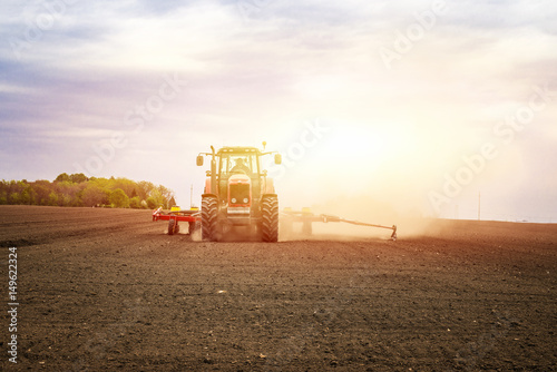 © littlewolf1989, Obraz premium Agriculture. Tractor working on the field. Outdoor activities.